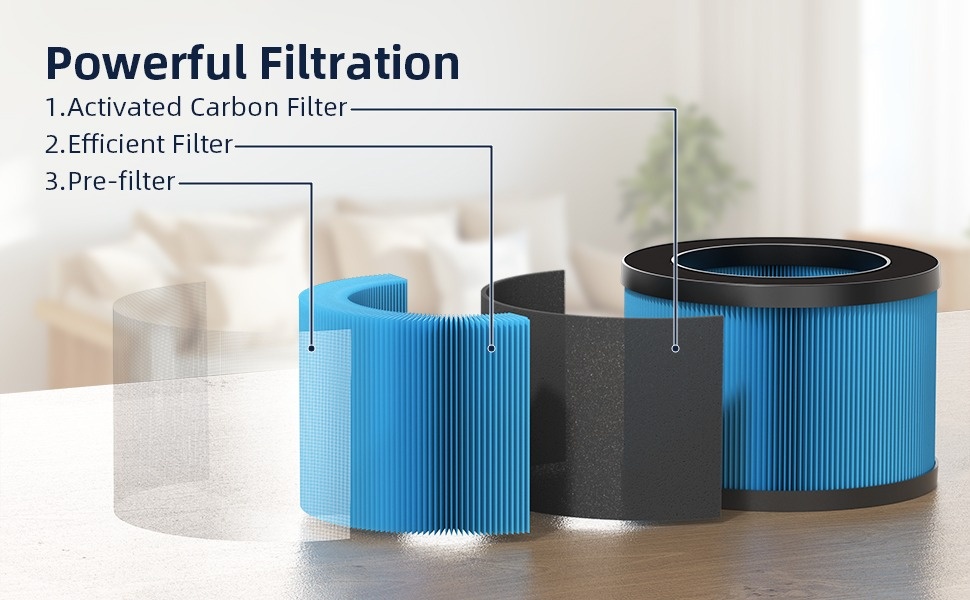 - Multi-Layered System: Features a pre-filter, HEPA filter, and activated carbon filter to trap and neutralize a wide range of airborne pollutants.